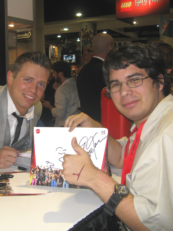 Justin Orsino with WWE Superstar The Miz at San Diego Comic-Con, July 22, 2010, at the Mattel booth. At the time, The Miz held the Money in the Bank briefcase and the United States Championship, months before capturing his first WWE Championship.