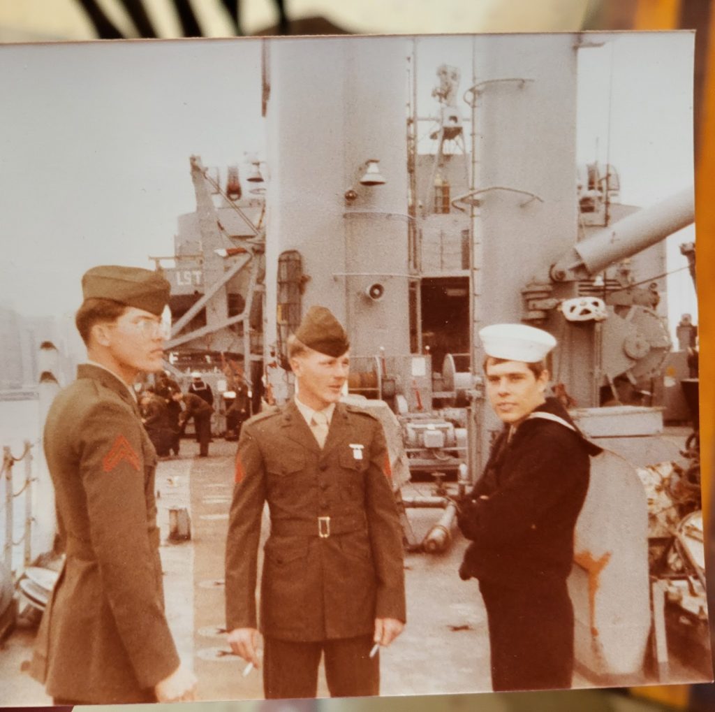 April 1983. Vincent Hugh Mousel as a marine stands on the far left.